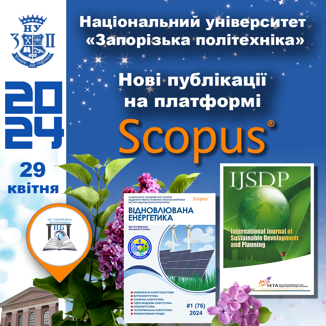 Нові публікації науковців НУ "Запорізька політехніка" на платформі SCOPUS ( 29 квітня 2024 року)